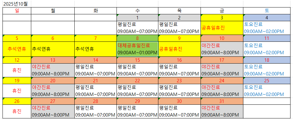 2025년 10월 진료일정을 알려드립니다.