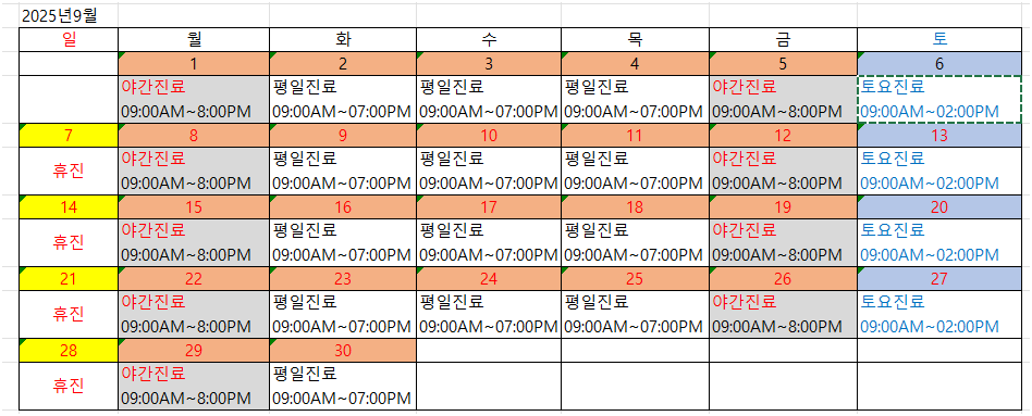 2025년 9월 진료일정을 알려드립니다.